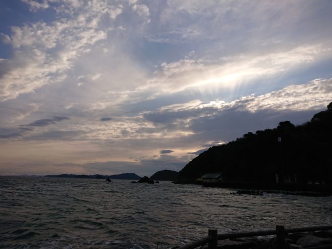 西の空の虹は見れませんでしたが。雲の切れ間で、おひさまが。