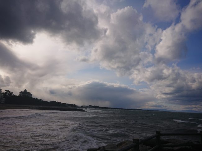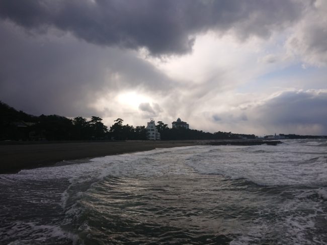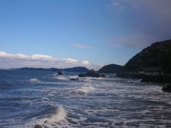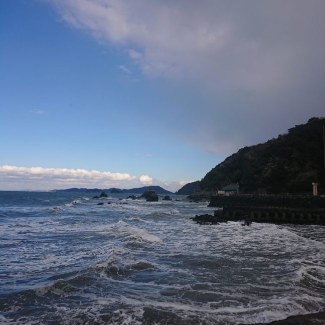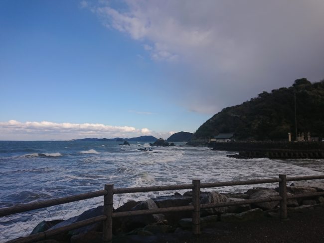 2022年02月21日 - 日記 - 虹を期待して 2月20日 午後3時30分頃の様子雨がパラパラしてきたので、ついつい「虹」を期待してしまいました。風が強く、波が荒い日に。 御塩殿方向の海 西の厚い雲から、日が出たあとの「夫婦岩」 白波が立っています。