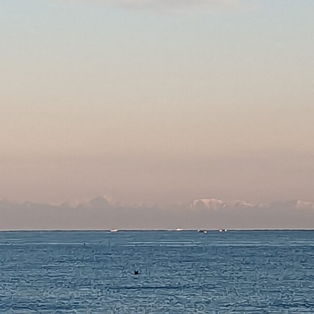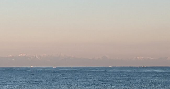 対岸の雪の御岳山が見えます。