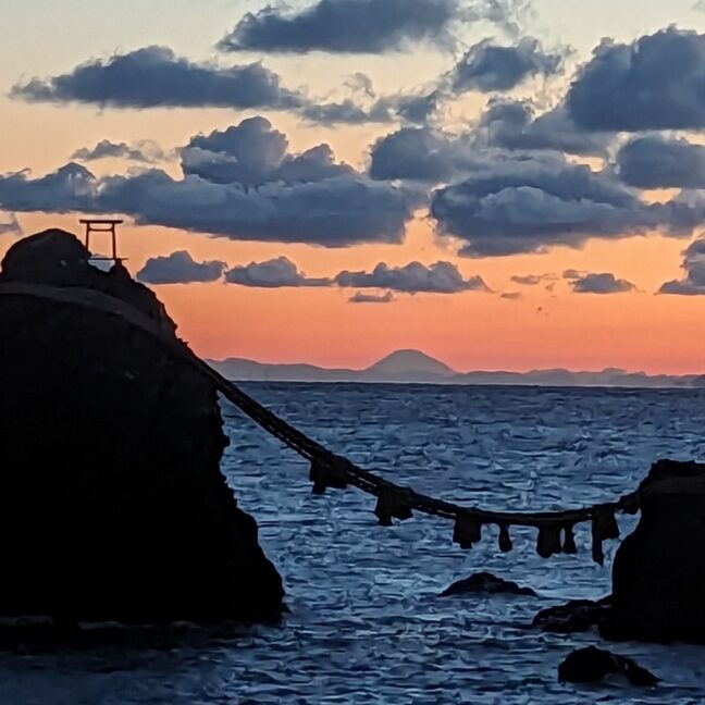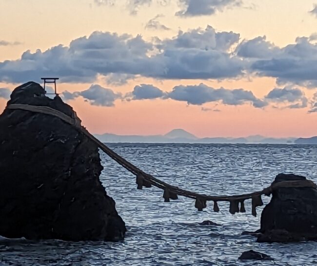 夫婦岩の間から富士山がお目見えしました。
